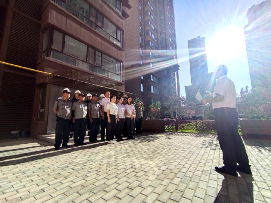 此次演練模擬了突發(fā)情況導(dǎo)致電梯故障,多名乘客被困,由1號(hào)樓3單元503業(yè)主文強(qiáng)、盛景雅苑物業(yè)服務(wù)中心綜合辦公室人員、客服人員、工程人員和安保人員聯(lián)合通力電梯維保公司人員在4號(hào)樓西梯進(jìn)行。演練開始前,總指揮——項(xiàng)目經(jīng)理謝云云對(duì)本次演練進(jìn)行了總體部署。