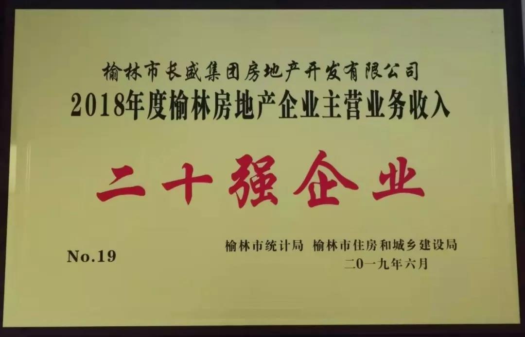 “榆林市長盛集團(tuán)房地產(chǎn)開發(fā)有限公司”獲評(píng)“2018年度榆林房地產(chǎn)企業(yè)主營業(yè)務(wù)收入二十強(qiáng)企業(yè)”