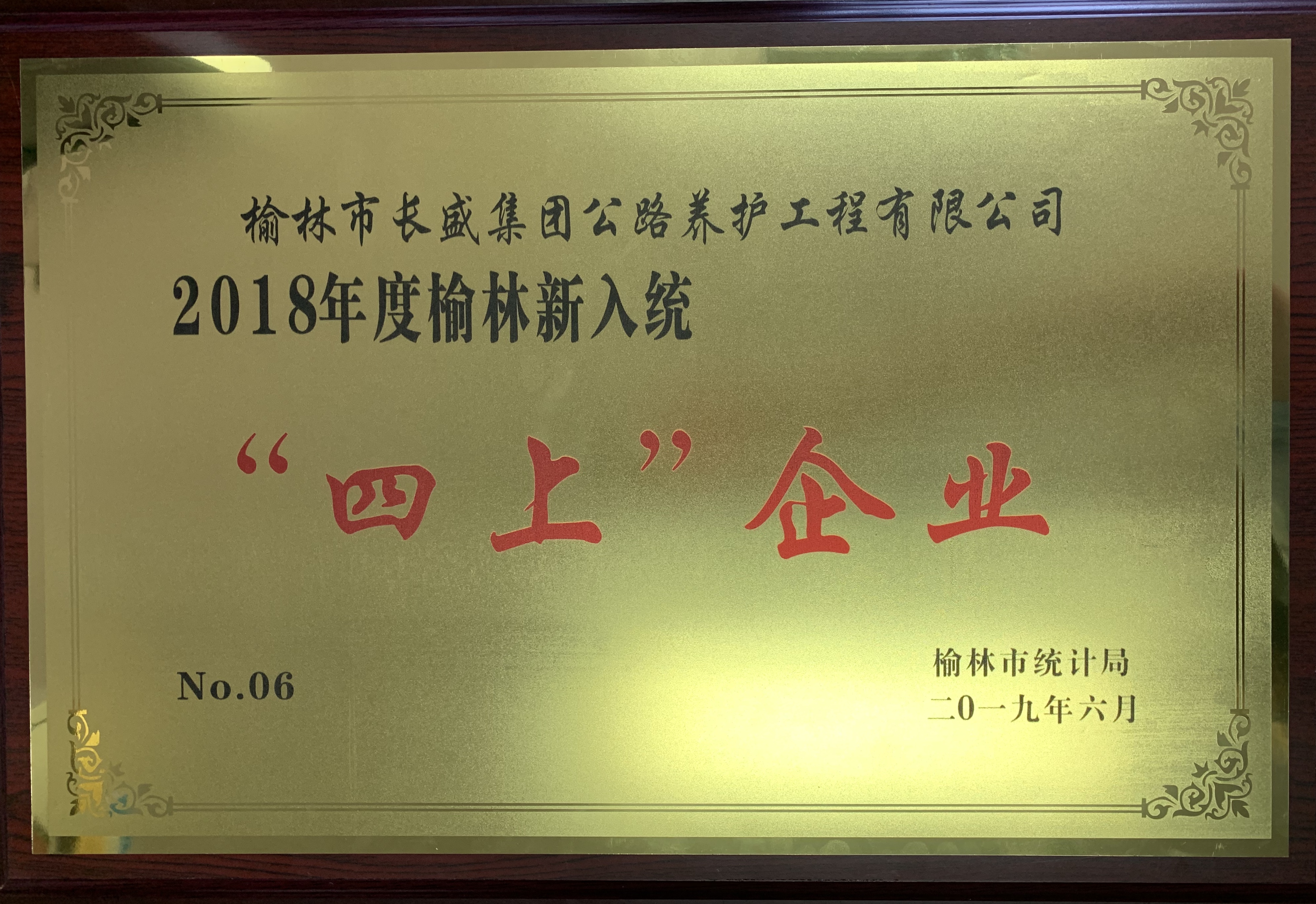 “榆林市長盛集團(tuán)公路養(yǎng)護(hù)工程有限公司”獲評(píng)“2018年度榆林新入統(tǒng)四上企業(yè)”